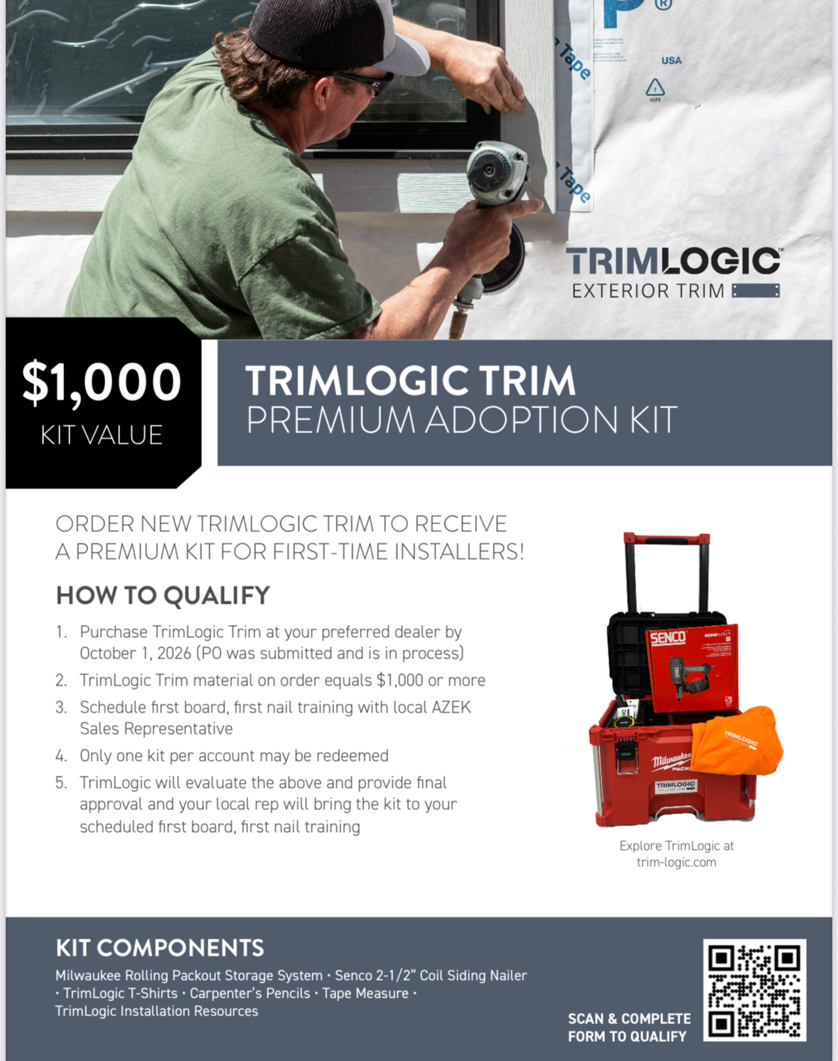 Order a new TrimLogic trim to receive a premium kit for first-time installers! Click here for details and how to qualify.